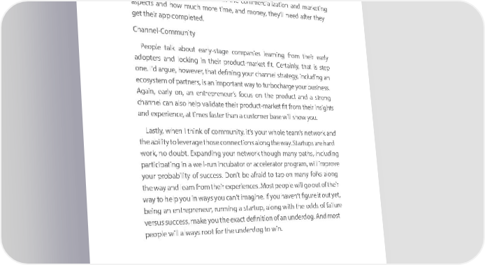 Founder Founder LessoLness fromsons from the S thealesforce Salesforce IncubIncubator ator Product-MarketProduct-Market KnowKingnow yoingur yomaurrk maet arnketd co anmdpetitio competition reanlly re wellally iswell the is fir thest tip firs It w tipou I lwd ould offer offerup. It u’sp so. It e’sas soy etoas developy to develop apps appin thes in clou thed clou thesed these days dathayst Ith thiatn Ik think a lot aof lot en oftrepre entrepreneursn eursjust jujumstp ju inm wp ithoin wuithot thinkingut thinking enough enough abou abt thoue t the businesbusiness mods elmso anddels pandain sp theyains ’theyre add’reressi addnressig. Asn gsu. Asch ,su theych, theyget dow get n down the ptheath pwaithoth wuithot thinkiut thinking abnogu abt theout cothemm coercimmalizerciationaliza ationnd maandrk maetinrkg eting aspecastspe anctsd howand howmuc hm mucoreh m tioreme ,ti andme, mandone my,one theyy, ’theyll nee’lld n aftereed afterthey they get their get their app caopp mpletecompleted. d. Channel-CommunityChannel-Community PeoplePeople talk atalkbo uat bearly-out early-stages tcompaage companies nlearniies learning frongm frotheirm theirearly early adoptersadopters and lockiand nlockig inn gtheir in theirprod ucprodt-mucart-kmet arfit.ket C ertfit. aCinertly,a thatinly, thatis ste ip s step one. Io’dn ea.rg I’du ea,rg houwe, evehowr, evethatr, dthatefin dinefig nyoinugr yochaunnr chael snntrategel strategy, inclyud, ininclgud an ing an ecosyesctemosy softem part ofn parters, nisers an, importais an important waynt tow aytur toboch turbargeoch yoargeur yobusuiner busss. iness. AgainAgai, earlyn, earlyon, anon entreprene, an entrepreneur’s fourcus’s fo ocusn the on prodthe ucprodt aucndt aa ndstro an sg trong channchael nncanel also can helpalso helpvalid atevali dtheirate theirprod ucprodt-mucart-mket afitrk etfro fitm frotheirm theirinsight ins sights and eanxperied experience, atnc timee, at s timefasters f asthatern thaa cusn tomera customer base wbasille s whoillw s yohouw. you. LastlyL,a wstlhey, nw Ihe thinkn I think of co ofmm coummnityu, itn’its yyour, it’s yourwhole whole team te’s anetm’ws netorkw anorkd and the abtheility ab toility lever to leverage thoagese tho consen conectionnections alongs a thelong wa they. Swatartupsy. Startups are h aarred hard work,w noork, d ounob dt.ou Expbta. nExpdingan dyouring yournetw norketw thoughork though man yman pathsy p, ainthsclud, ininclg uding particpipartiaticnipga intin ag w inell-ru a well-run incunb inactorub orator acc oreler accaelertor progrator program, willam, i mwillprov ime prove your yoprourbab proilitybab ofility su ofcces sus.c cesDos.n ’tD beon ’at frbeai da frtoa itda pto o tna pm oann ym folankys folalonks g along the wathey a wandy le aanrnd le froarnm frotheirm theirexperien experiences. Mostces. Most people people will go w illout go of out thei ofr their way tow ayhelp to youhelp in you way ins w yoayus ca yonu’t caiman’tgi imane.gi If nyoue. If h youave nh’atve figuren’t figure it out it yet out, yet, beingb eingan en antrepre entrepreneur,n runeurn, irunng nai nstga rtua stpa, rtualongp, a longwith wtheith od theds od ofd fas ilofur fe ailure versusver sususcce sussc, cemassk,e ma youke the you e xtheact e dxefiactn ditionefin itionof an of un adner udnogder. dAognd. mAnosdt most peoplepeople will a wlwaill ysalwa root for theys root for the under undog to derdog to win. win. 113113 113113