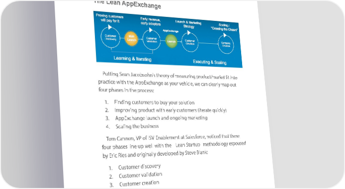 ChChaapter pter ChChaapter pter 99 99 5. Word of mouth5. Word of mouth Ask anyAsk mar anyk mareterk toeter tell to yo tellu the you mo thest mo effectivest effective form formof ma ofrk maetinrkgeti, annd g, and they’ll they’ll alwaysalways say wor sayd worof mod ofu thmo. uth. We haveWe haveseen seethen e mtheerge emncergee ofnc ae n ofew a canetegoryw category of soft ofwa softrewa to mare tona mage nage this effect.this effect. Advo Acdacvoy macacryk maetinrkgeti plantforg plmsatfor likmse In liflkueitive Influ proveitive prove that mana that managing ging AppEAppExchangexchange ecos yecostesmys iste omn eis of on thee of pillar the pillars of sus ccofe sssucc foress Sa forles Saforlecesfor, a ce, a multibillion-dollarmultibillion-dollar comp coanmyp wanithy mwithillio mnsillio of nsen ofd u esnerds. u Thesers. AppE The AppExchanxcghe ange markmaretplaketplace supportce supports worsd w ofor md outhof m outheffort efforts by sa llobyw ainllogw cusingto cusmerstom to ers to rate andrate revieand wrevie appws. app Theses. These revie wsrevie canws bcane us beed ustoe sdo tour cseo ucusrcetome customer r storiesstories and identifyand identify potenti potential advoal acadtesvoca fortes yo forur yocompur canompy anandy proanddu proct.duct . The criticalThe critical piece piece of thi ofs e thicoss yescteosmys ites omu ri scus outor cusmerto bamerse .ba Ouser .colle Our ccolletive ctive customercustomers ares pareart pofa rtthe of lthearger la rgerSale sSaforlecesfor Ochean Oahan — a the — Stheale sSforcalee sforce familyfa milythat thatinclu deincsl ueveryodes everyone inn thee in vthealu ev aclhaiue nc haiof nthe of developthe developmentm, ent, deliverdelivery, andy , uasned of u soeu ofr s oolutiour solutions. Ons.han Oah isa neam ibos edmiebod dinie thed in theSa lesSaforlece sforce commcommunityu atnit largy ate larg, an eonli, ann onlie annde physicand physical comal mcounmitymun ofity us ofer user grou pgros, ups, influencersinfluencers (MVP (MVPs), parts),n parters, nanders, eandmployee employees whos wareho w aorkire wnorkig togetheng together r to driveto drive valu eval anude aadoptiond adoption, andn, carenda tecre poatesitive pos itivechan cgehan wgeithi wn ithieacnh each customercustomer company company and i andn the in ecothes ecoystes m ysteas m a wahols a we.hole. User Usergrou psgro aunpsd MVP and sMVP are sli kareely li thekely be thest plbeacste pl toac seta tort syotaurtr yocusutor cusmetor mer one doneoes dnotoes mar notk maret tok etthe to Sa thelesfor Salesforce uscere grouseru pgro coump mcounmitymun ority MVP or sMVP. s. You needYou need to appro to aacpproh theachm the withm wauiththe auntithecityn tiandcity bande ab bovee ab boveoar db owaitrdh with your yourintentio intentions. Thenss. eThe twsoe gro twou psgro ofu pspro ofspe proctsspe arects c oammre coittemmd itteto gettid to ngettig ng the mtheost m oostut ofou theirt of theirSales Sforcealesforce inve sitnmveesntt,m asen t,w ellas aswell ad asvanc adivnancg thine g the ecosysteecosmyste as am whole as a whole — yo— ur syooluurtio solnu inctiolnud incedlud. Approed. Approachinagchi thengse the userses users with awithn opport an opportunityu tonity provi to provide hodnee host feenesdbact feedback on ak n oewn a s nolewutio solnu istio usuan is llusuay lly the bethest waybest to engageway to engage this aud thisie audnceie ofn ceea rlyof adearlyopter adopters and s ainnfld ueinnflceruesn. cers . By exploitingBy exploiting the trtheans trpaansrenpta renanttu rena tofure the of AppEthe AppExchanxcghae, ningcle,ud ininclg uding reviewreviews ands ratiandn gratis, youngs ,c youan help can helpnurtu nreu rtwuorred w ofor md outhof m outhand gaiandn gaiearlny early reviewreviews in outs inb ououtndbou mandrk maetinrkgeti andng pro andm prootiomnotio as an m asean a ms ofean bus ofild buingil trdiusngt trust and credibilityand credibility with withpros pectprosspect ands cusandto cusmertos.m Terres.ati Tnrega yotinugr yocusutor cusmertos mers well, well,delivering delivering a qua ality qua sollityutio soln,u tioandn, liste andn listeing ntoin feeg todbac feedback are kthe are k eythes keys 108108 108108
