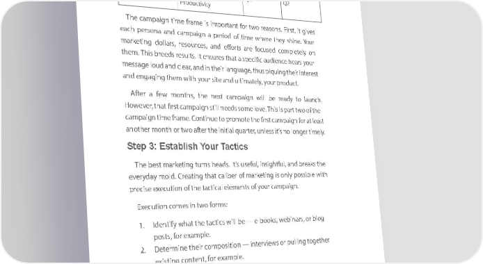 ChChaapter pter ChChaapter pter 77 77 Additional Additional AudienceAudience CampaignCampaign LaunchLaunch PromotionPromotion Salesforce ASalesforce AdminsdminApps As Apps Admins dLminoves Love Q3 Q3 Q4 Q4 SmallS Bmallusin Besuss iness Apps AApps Accelercacelerting ating Q4 Q4 Q1 Q1 LeaderLeas ders BusineBusssiness Sales SLaleseader Lesaders Apps Boosting Apps Boosting Sales Sales Q1 Q1 Q2 Q2 ProductivitProductivity y The cTheam pcaaignmp atiignme tifrmame efr amis importe is important forant t wforo retwasoon res.as Fironss.t , Firit sgivet, it s gives each eachperso persona andna camand pcamaignp aaig perion a period of dti mofe tiwmheree w herethey theyshin es. hiYonue.r Your markmaretingketing dolla drsoll, resoars, uresorcesu, randces, effortand efforts ares foarecus foedcus coemd pletelycompletely on on themthe. Thism. bThisreed bsreed resuslt res.su It ltesn.s Iut reenss thureats ath speat ac ifispec audcificie audnceie hencear she yoaursr your messmesage sloageud loanudd c alenadr ,c andlear ,i nand their in theirlangua langgeua, thguse, piqthusu ipiqng utheiring theirintere insteret st and engagingand engaging them w theithm w yoithur syoiteu and r siteulti and maultitelmay, yoteluyr, yoprodur ucprodt. uct. AfterA after few a mfewon thsmo, ntheths, ntheext ncamext pcamaignp awigilln bweill rebaedy re toady l auncto lhaunc. h. part twtho e of the HoweveHowever, thatr, firthatst cam firstpaig camnpaig stilln n stilleeds n eesodsme s olovmee. lovThise. i Thiss part is two of campaigncampaign time tiframme efram. Cone.ti Conuneti tonu proe tom prootem theote fir thest cam firstp camaignp foraig nat for leas att least anotheranother mon thm oorn thtw oro after two afterthe in theitia iln quitiaartel qur,a unrteler,ss un itle’sss n oit ’los nnoger lo ntigermel tiy.mely. Step 3: EstablishStep 3: Establish Your Your TacticsTactics The beThest bemarstk maretingketing turns t uhernads.s he Iads.t’s us Itef’su usl, iefnsuightfl, insuightfl, andul, bandrea kbsre thae ks the everydeveryday maolyd m. Creolda. tingCrea thtingat cthaliabt erca liofb erma ofrk maetinrkgeti is nogn lyis oponlyss ipobless wibitleh with precise preecxise ecutioexecn utioof then of tacti theca tactil elecaml eleentms ofen yots ofur yocamurp caamignp.aign. ExecuEtionxecu ctionomes comes in tw io forn twmso for: ms: 1. Identify what the tactics will be 1. Identify what the tactics will be — e-books, webinars, or blog — e-books, webinars, or blog posts, for example.posts, for example. 2. Determine their composition 2. Determine their composition — interviews or pulling together — interviews or pulling together existing content, for example.existing content, for example. OftentimeOftentimes, thes , fothecus fo iscus on is num on bernum oberne, oandne, nandot numbnot number twero. tThwoe . The markmaretingketing team tea idemn tifieidens tifiewhas tw tachatit ctsac wtiillcs mwaillk em uapk ethe up cam the pcamaign,p abuign,t but they theydon’t do nenc’te ssanecryessa thirynk thi thronku throgh theugh b theest cboemst pocosmitiopons itioof enac ofh etacachtic t. actic. can be breakthrough andugh i andnspiri insngpiri onn git so onwn its ,o inwn add, initio addn itioto n to A blogA blogpost pocans tb e breakthro supportisupporting yourng yourmajor m cajoram pcaamignp apieceign pieces. Or s.it Ocar nit scimanply sim proplym prootem thotee the e-booke-book you j usyotu l jaunustche laund. Ccheod. Cmpoosmitiopons iitios keny i.s key. 8282 8282