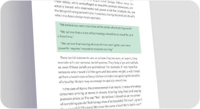 DDriving Criving CDDriving Criving Cuustomer Engstomer Enguustomer Engstomer Engaagemengemenaagemengementt tt nailingna ilingthe w thehy iws hythe i sk theey to key disrupting to disrupting your yoauudrien aucdeien’s inertiace’s inertia and danrivd dri-v - ing maingss maive samsiveou amntsou ofn Apple-lits of Apple-like custoke cmustoer amffiern itayffi. Thenity .e Theasiest eas waiesty twao y to descridbeescri thebe g thealva gnizingalvanizing pow erpo ofw erwhy of isw hywith is wa conith ac eptcon cI eptcall , Ithe call b, theelie f belief statemstateentm. ent. For ApplFor eAppl, moes, tm ofo sitst of pro itsdu proct dulauctn clhesaun cinhes re cinent re cyeentar sye feaartures fea sturelick slick videosvi dweosith wcoithmm coentmmaryent froarym froApplem Apple Chief Chief Design Design Officer Officer Jony JonyIve. Ive. TheseThe videose videos, whiles, w camhile ouflcamaouflgeda ages bde aasutif beualutif proudl uproct dshouctwca shosewcas, asere s, are actuallyact upallyack epda cwkeithd wstithate mstaetentsm enotnts abnotou abt wohuat tw thehat prothedu proctsdu dcto,s b duot , but the design thinking behind them. In essence, the tightly held beliefs with the design thinking behind them. In essence, the tightly held beliefs with which thewhich the Apple Apple desigdne teasignm teaoperm aopertes. ates. “We believe our users should be at the center of everything we d “We believe our users should be at the center of everything we do.” o.” “We b“Welieve the believe that a pieceat a piece of te cof tehnologychnology shoul should be ad bs bee aasutif beual utifas uit l as it is funisc tiofunnactiol.” nal.” “We b“Welieve the believe that maakingt ma dkingevic des thinnerevices thinner and lighte and lighter, butr m, borute more powerfpouwl erfrequires iul requires innovnanovtive proative problemb solvinglem solving.” .” TheseThese belief b selieftate mstaetentms earent ss oare co smo pellicomnpellig bencga ubseec,a auss eb,uyers as buyers, they , they resonreateson waithte wourith per ourson perals onbeliefal b seliefyste smystes. Theyms. Theyhelp helpalign a anlignd vanalidd atvae lidate us, evenus, even if those if those beliefs beliefs are a spirare aationspiraationl. Fora l.e Forxam eplxame, ifpl I es,ee if Imyself see myself as as someonesomeone who wshoulho sdhoul visitd thevisit gy them gyanmd loseand soloseme so wmeighte weight, a well-ti, a wmell-tied med ad froamd froa hema alth he clualthb orclu fba norcy f akitchenncy kitchen blend berle ndevaerngelizi evangelizing theng b theenefit benefits s of a heofa althy hea lifestyle lthy lifestyle may bmae enoughy be enough to quickly to quickly convertconvert me. me. In theIn c thease cofa seAppl of eAppl, thee ,phe then pheomennomeon thnonat rethsaultst re sisults mo isb sm ofo bsms ofitte smn itten consuconmerssum aersrriving arriving at stores at stores in droves in droves, braving, braving long lines and paying long lines and paying pre premium prices, as if to say “Yes! I do believe I should be at the center mium prices, as if to say “Yes! I do believe I should be at the center of everything you of everything you do! Tedcoh! nTeologychnology shoul sdhoul be db be eautifbeualutif! Thinul! Thinner? Lighterner? Lighter? ? More powerful? Of course! We share the same vision! We’re both cool!” More powerful? Of course! We share the same vision! We’re both cool!” AlthoAlthough theseugh these actua alctu wordal ws ordare sunli arek elyunli to kelybe spo to be spoken. ken. Many sales methodologies focus on uncovering a buyer’s personal Many sales methodologies focus on uncovering a buyer’s personal and eandmotion emotional motival maotivtionsations, for ,the for verythe veryreaso ren athsoant ththoats etho elementse elements s inspire the quickest and most decisive action. But belief statements inspire the quickest and most decisive action. But belief statements aren’at relimnite’t lidm toite thed to co thensu comnersu worldmer world. In the. In co thent ecoxtn ofte hoxt ofw hogrewa tgre leadater les aders inspire action, Dr. Martin Luther King Jr.’s now famous “I Have a Dream” inspire action, Dr. Martin Luther King Jr.’s now famous “I Have a Dream” 6363 6363