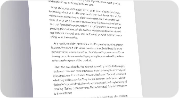 Subscription EconoSubscription Economics: m ics: How HoRecwu Rrring ecurring ReveRneveue Cnhaue nCgeshan Everythinges Everything g But asB uwte as got we into got itinto, we it re, walizee reda lizethisd require this required us tod usch toange cha ongeur w oholur we hole way ofw aythi ofnki thingn. kiWneg h. Wade tohad re-ev to re-evaluatealu theate w thehole w holepurpo psuerpo of sae softw of a software are compcaonmy,p chanaynging, changing the fun thedam funentdamalent queasl tioqunes frotiomn fro“Homw “ Homawny ma pronyd uprocts ducts can I casell?n I” s toell? “W” toha “tW dhoesat dmoesy c ustomy cmustoer wamernt wa, anntd ,how and howcan I cdaneliver I deliver that that as anas in tuitive an intuitive servicseervic?” e?” It wasItn was’t junst’t abjusotu abt juosutt sjuhiftist nshiftig unitngs u anitnysm aornyem. Itor wase. It awasbou at bogroutw groing wing and mandonetizi monetizing a dnegd ai cadetedd icacteustod cmustoer bmasere .base. WhatWh abaoutt ab theout StheaaS SmaaSod elm ofordelce ford ucse dto u thinks to think of cu ofsto cmustoers?m Serusr?e , Sure, technologytechnology drove d roveus to u offers to offerwhat w whea dit wde over did overthe inter the ninteret. Anfteret. A afterll, th ae ll, the visionvision was as wa esa assy easa sybu asyin bgu ayi bnookg a b onook A maon zoAman. Bzoun.t th Bautt reqthaut irereqduired u us to s to thinkthink of w hofat w whea dt iwde as d iad saservic a seervic, some,ethi somnethig thnagt peoplethat people subs csriubbescdri tboe, d to, and thandat forcethat forced us tod u psu tot ourselves put ourselves in a position in a position where w herewe w weree w alerewa yals ways pleasingplea thesing c theusto cmustoer. Allme ofr. All a su ofd ade sun,d dewen, ca wreed ca lesresd ab lesouts ab wouthat w prohadt prod- - uct feuacttures features soun sodeudn coolded , cooland, waned fo wceu sfoedc uosned w ohna tw chuastot cmustoersm wersere were using,u wsing,hat they nee what they needed. ded. As a resultAs a result, we di, wden ’dit sdtnart’t swtaithrt wa ithlist aof li simt ofpres imspresive-sounsive-sounding dproding uprodct uct featuresfeatures. We st. Wartee stda wrteithd wlotiths of lot qsu ofestion questions. Mas.rc M Bearcnioff Be nwasioff liwaske a li oknee a- one- man mcoanns umconersum surveyer su operrvey aopertion.a tioHisn. pitch His pitch meetings meetings were were more m aorekin tao kin to focusfo groupscus groups. He wa. Hes c waonsst caontlynsta pepperingntly peppering his prospe his prospects wcithts questionwith questions s so he coso he could eunlgineer d engineer a killera killerprodu proct.duct. Over Othever ptheast pdaecstad deec, adthee , intheternet internet, spre, aspread d by mboyb ilemo technologiebile technologies, s, has forcehas forced mored m aorend m anored m boreusin besseusinsesse to ssta tort sthinkingtart thinking the sam thee sam waye, twao y, to take ata ckues ato cmuser-firsttomer-first mind mset.ind Aset.ma zoAman, Netflizon, Netflix, andx, Zipc anda Zipcr all areir anllvente reinvented d whatw theyhat theydid a ds iad s aervics a seervic. Theye. Theytrack etrdac ckuestod cmustoer preferenmer preferences, tcaesilore, tad ilored their theirofferings offerings to ind toivi indduivial needuadl nees, andds ,a alwand yaslwa tookys tookthe lo theng-ter lonmg-ter viemw vieof w of creaticnrega lifetiting mlifetie cumseto cumserto vmalerue v. aThelue .focu The sfocu shifteds shifted from frothem tr theans tractioansn action to the to the custocmustoer. mer. So inSoste adinste ofad selling of selling static s tproaticdu proctsdu thctast evthaatpor evaatepord aafterted afterchec kcheout ckout (along(a longwith wtheirith theircustomers) customers) or “set-it- or “set-it-and-forget-itand-forget-it” on-pre” on-premise minisseta lins-tal - lationlastio, bunsis,n buessisesnes coulses dc oulofferd offerongoing ongoing service services thast rethsaultet redsulte in sdma inrt s, mart, responressponive relsiveation relastionhipss. hipsRun.ni Rungn nionn ga onsubs a criptiosubscription modeln model, they, theycoul d could offer offerlower lo upfrontwer upfront costs costs, contin, continuou uously imsprovely improve their theiroffering offering, and, leandarn learn way mworeay m aorebou at btheirout theircusto cmustoersm throughers through usage u saanged baehnda bvioreha aviornalytic anaslytic. s. The cuThesto cumser towasmer nwaso lo nnoger lo ntheger ghost i the ghost in the ERn the ERP. P. 1313 1313