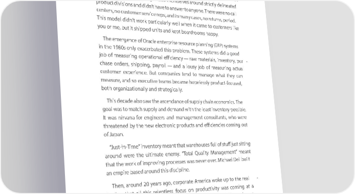 Subscription EconoSubscription Economics: m ics: How HoRecwu Rrring ecurring ReveRneveue Cnhaue nCgeshan Everythinges Everything g ThenThen, once, o Fornced Forestdab elishestabdlishe command commanding dimangrk maet srhketar es,h theyare, theycoul d could start tostart gently to gently raise rtheiraise theirprice prices ands ma ankde ma mokne eymo offney the off d theifferen difference, orc the, e or the marginmargin. The .m Theargi mna rulergind rule everythingd everything, and , aa nlittled a littleplan npleadn onbesolesd obsolescence cence nevern heverurt. hurt. It’s dItifficult’s difficult to overstto overstate theate pothew erpo wtherat thbigat post-big post-war waAmr ericAman erican corporcorporationastio had.ns Theyhad. Theyorga nizedorganized thems theelvesmselves arou nadrou strictlynd strictly delin deaelitend eated productpro ddiviuctsion diviss andions d andidn’ dt hidanve’t htoa vean toswer an stower an toyo anneyo. Therene. There were were no cal nol call centercenters, no cs,u nosto cmustoer smerviceer service reps, repands, i nan mand iny man casesy c, asnoes ret, nour ns,ret uperiorns, period. d. This mThisod elm oddideln ’dt iwdnork’t w porkartic pualrticarlyu wlaellrly wwhenell w ithen cam ite c amto ceus toto cmuserstom likerse like you or yomu or e, bumte ,it shippe but it shipped unitd sunit ands k anept d kbept oardrooboardrooms happms happy. y. emergenmergence of cOer ofacle O renterpriseacle enterprise resou resorce pluracnnie plnagnni (ERP)ng (ERP) syste systems ms The The e in thein 198 the0 198s only0s onlyexacer exbaacertedba thiteds pro thisb lepromb. Thelems. eThe sysstee symsste dmsid a d gooid ad good job ofjo mb eofas murienasguri operng aopertionaationl effiacl ienefficcy ien—c ry aw— rmaawteri maalsteri, inaventorls, inventory, pury, p-ur - chasec horderase orders, shippings, shipping, payroll , pa—yroll and— aand lousy a lousy job ofjo bm eofas muringeasuring actua acl tual custocmuserto emxperiener experience. Bcuet . cBoumt pcaoniesmpa niestend tento dman to ageman wageha tw theyhat theycan can measmureeas, aurnde, soan exd soec uextiveecu tetiveams te bamsecam bece amhopelese hopelessly proslydu proct-focduct-focused, used, both borgotha nizorgaationiznaatiolly ananllyd str anad tegicstrategically. ally. This dThiecas dede caalsode s aawlso the saw as thecen asdceannced anof cesu pplyof su chaipplyn chai econon ecmonoics.m Thicse . The goal wagoasl to wa mas totc mah sutcpplyh su pplyand d aenmad dnedma wnithd wtheith le theast leinasventoryt inventory poss ipobless. ible. It waIst nwairvsa nnirva foran ae nforgineers engineers and maandn amagenmaentgem coentnsult conansultts, anwhots, wwhoere were electroncictro pronicd uproctsd anucdts effiandcien efficcieiens ccoiems ingcom ouingt out threathreteneadte bnye dthe by n theew new ele of Japofan Ja. pan. “Just-in-Ti“Just-in-Time” imnventorye” inventory meant m ethaantt wtharehouat warehouses fullses of full stu offf stjustuff sitti justn sittig ng arounadro uwerend were the utheltima ultitema enetem eney. “mToty.a “l TQotuaal lityQu aMlityan aMgeanmaent”gem ent”mea nmt eant that thethat w theork w ofork im ofprovi improving proceng processes wssesas neverwas never over. oveMicrh. Miaelc Dhaellel bDuellilt built an emanpire embapire sed abaseround ad rounthisd dthiisciplis disnciplie. ne. ThenThen, aroun, adroun 20 dye 20ar sye agaros, acorporgo, corporate Aamteeric Ama ericwoake w uopk eto u thep to re theal rea-l - izatioizna tiothant thalla tthis all relethisn reletlessn tlefocssus foc onus pro ond uproctivityductivity was cwaoms ingcom aingt a at a cost, cnamost, elynam theely reltheationship relationship betw beteenw theeen venthed venor adnord theand ctheusto cmusetor. mer. The cTheusto cmustoer wmaers aw coas ma pletecomplete unkn unkown,no awn, rec aept reacceptle aact lethe a ten thed ofen a d of a distridbistriutionbution chain ch whoseain whose sole spurposeole purpose was towas c otons ucomnse utheme prodthe uprodcts uct s compcaoniesmpa mniesad me. ade. t, many ma ofny the ofse the neswe cneonsw umconsersum wersere w hereaving ha vingdiffic duifficlty ulty As it tAsurne it tdu rneou d out, gettinggetting their theirnew neprowdu proctsdu toct sw orkto w. Anorkd. Anhodw hodidw cdiorpord corporate Aamteeri Acma erica 1111 1111