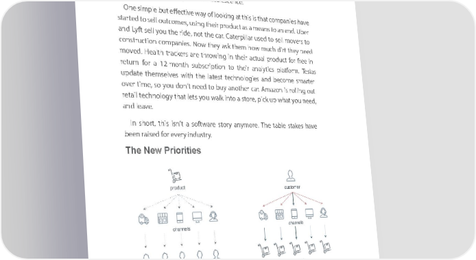 Chapter Chapter 1 1 The Subscription EconomyThe Subscription Economy TodayT,oda everythiy, everything is nmgoving is moving to a subscto a subscriptioription econn eocmoyn:o mmeyd: ima, etrdania,s tran-s - portatioportation, agrin, caultgriucreult, uherea,lth he acalthre , cacorensum, consumer gooer ds,goo andds, andeduca education. tion. CompanieCompanies haves havewoke won ukpe nto u thep to f acthet thfacatt peoplethat people want wan outct omeoutcs,ome not s, not ownershiownership. Theyp. Theywant wan custot cumsizedtom eizedxperie experiences,nc andes, theyand theywant wan contti cnountin-u - ous improvementous improvement, not pl, nannot pleannd obsed oleobsscoleencsce.ence. One simpleOne simple but effe butc tiveeffe cwativey ofwa lookiy of nlookig atn thig as ti sthi thsa its cthomatp canomiepsan haievse have startedstarted to sell to out sellc omeoutcs,ome usings, us theiring theirproduc prot ducas at m asea ans m eato nsan to end. an Ubend.er Uber and Landyft sell Lyft yo sellu theyou rid thee, ridnote ,the not c thear. C caaterpillr. Caterpillar useadr utose sdell to m sellover msover to s to constructionconstruction compa companies. nNoies.w Notheyw theyask them ask them how homucw hmuc dirth they dirt theyneed need moved.moved. Health He traalthck ertrasc areker sthro are wthroingw inin theirg in theiractu alac protuald uproct dforuc tfree for ifreen in returnret forurn afor 12 -am 1onth2-m onthsubs criptiosubscription to ntheir to theiranalyti anacslyti plcsatfor plm.atfor Tem.sla s Teslas updaupdte theatem theselvemselves withs wtheith lathetes tl atetecshnologiet technologies ands bandeco bmeec osmame rtesmar rter over overtime ,tim so eyo, sou dyoonu’ td noeen’td n toee bud toy abunothery another car. A camar. zoAman izos rollin isn rollig ount g out retailret tecahnologyil technology that letstha tyo letsu wa yolku waintolk ain stotor ae s, torpicek, uppic kw uphat w yohaut n yoeeud n, eed, and leavande leav. e. In short,In short, this ithisn’ts ias nsoft’t awa softrewa storyre s antoryymor anymore. Thee. tTheable t abstaleke sst ahkaevse have beenbee raisned for every raised for every indu sindtry.ustry. The New PrioritiesThe New Priorities We useWe thi uses di thiagras dimagra a lotm aat lot Zu aort aZ.u Itor saumma. It summarizes rizethe ss hiftthe. sOhiftn the. On lef thet left side, sidcome,p caoniempsa uniesesd utose fod custo fo ocusn getting on getting a pro aduc prot ducto mat tork maet — arketlig — aninligg ning their theirsales salesand distri and distributiobun ctiohannn chelanns aroelunds aro sundpec ifispec procifiducc prot liducnes.t li Tnoedas. yT, oday, they theyrecognize recognize that custhatomert customers spesnd spe theirnd theirtime tiacmroe ssac manross yman channy chelanns, els, 1414 1414